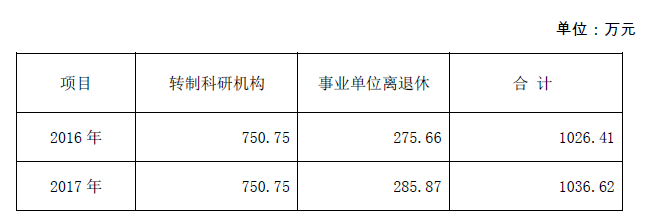 從上表中可以看出轉(zhuǎn)制科研機(jī)構(gòu)經(jīng)費(fèi)保持不變,事業(yè)單位離退休增加了10.21萬(wàn)元。