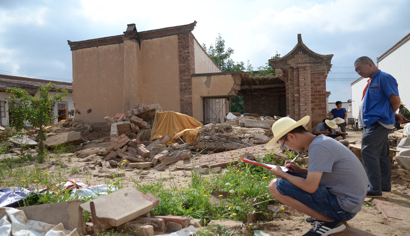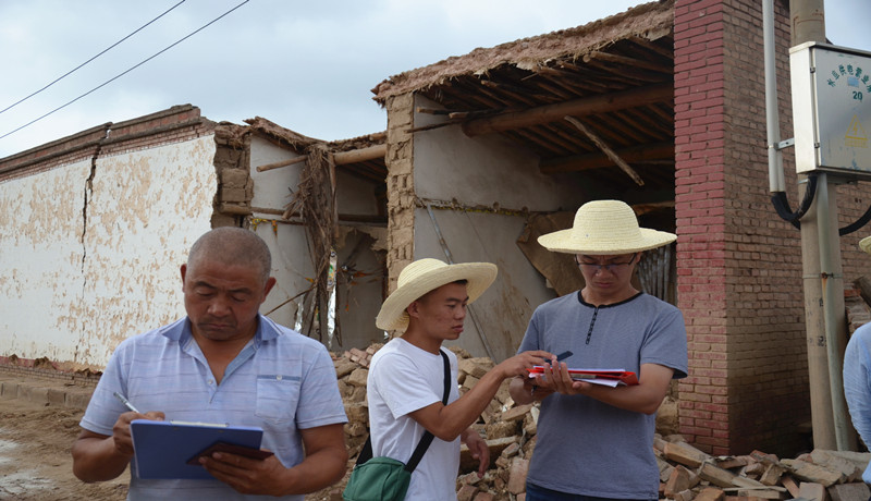接到災(zāi)情通報以后,我公司結(jié)構(gòu)所負責(zé)人陳廷乾同志帶領(lǐng)技術(shù)人員在第一時間奔赴該地,立即著手展開災(zāi)后房屋應(yīng)急鑒定工作。他們冒著洪水退去隨時可能引發(fā)疫情的危險,不辭辛勞,挨家挨戶進去排查,與村民們在受損的房屋內(nèi)、在沖毀的道路旁、在倒塌的門樓邊耐心詢問,詳細了解受災(zāi)情況,獲得了第一手寶貴的數(shù)據(jù)信息。