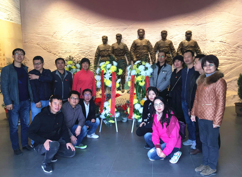 在莊嚴(yán)肅穆的紀(jì)念館前,大家奏唱國(guó)際歌,向革命先烈敬獻(xiàn)花籃鞠躬致敬,并面向黨旗,重溫了入黨誓詞,重新感受了那份莊重的承諾,那份厚重的責(zé)任。