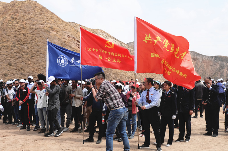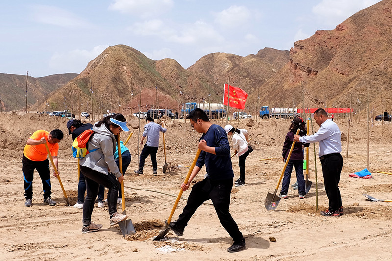大家頂著烈日,面對(duì)堅(jiān)硬的土夾石土質(zhì),锨挖手刨,互相幫助,每人都種下了一棵樹(shù),以親身經(jīng)歷體會(huì)到了“八步沙六老漢先進(jìn)群體治沙”的艱難卓絕。同時(shí)也以實(shí)際行動(dòng)踐行習(xí)總書(shū)記“綠水青山就是金山銀山”的發(fā)展理念和“眾人拾柴火焰高,眾人植樹(shù)樹(shù)成林”的講話(huà)精神。