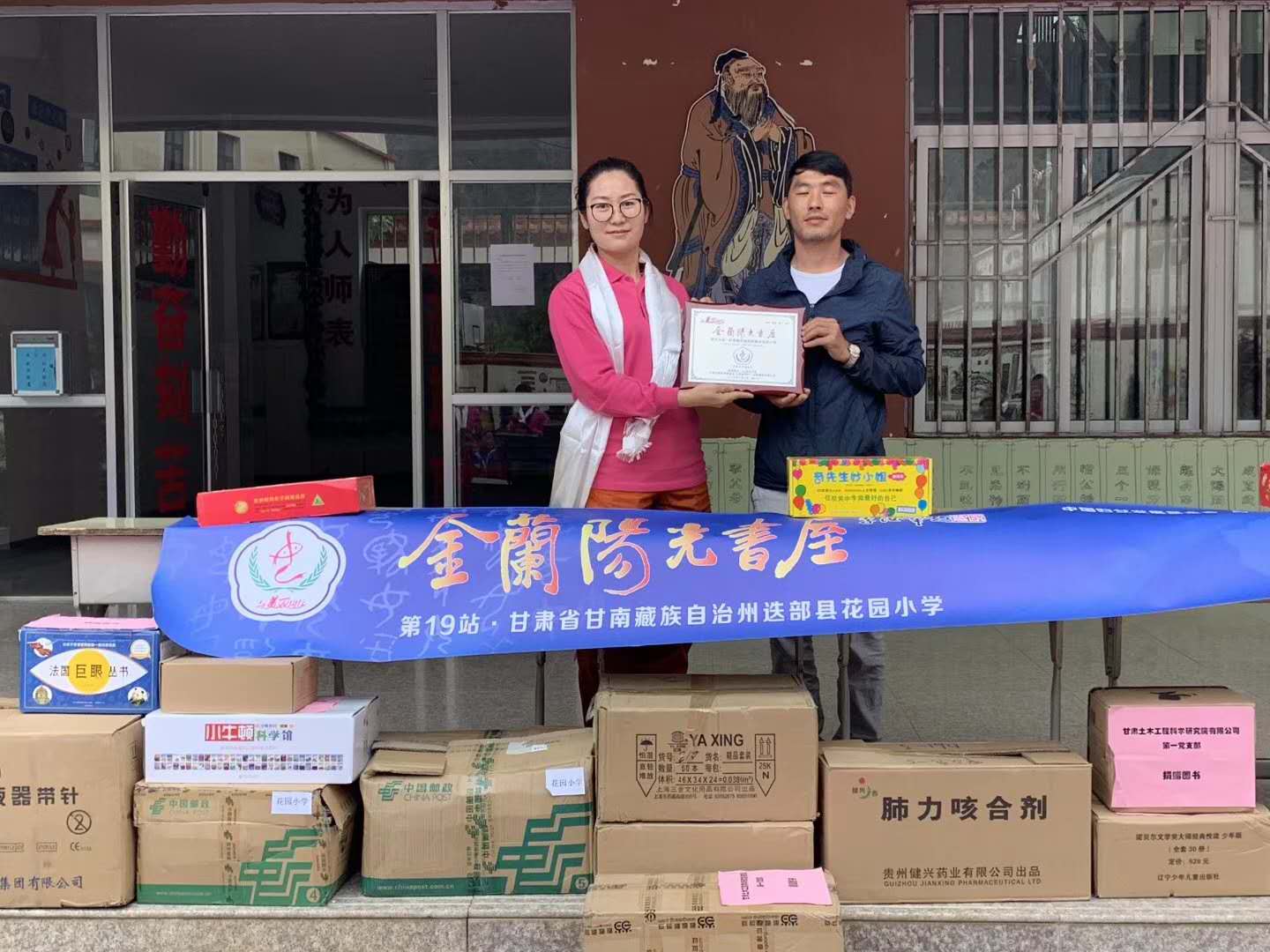 2019年6月8日甘肅省腫瘤醫(yī)院義診團將圖書捐贈給迭部縣旺藏鎮(zhèn)花園小學,建成了第19個金蘭陽光書屋。