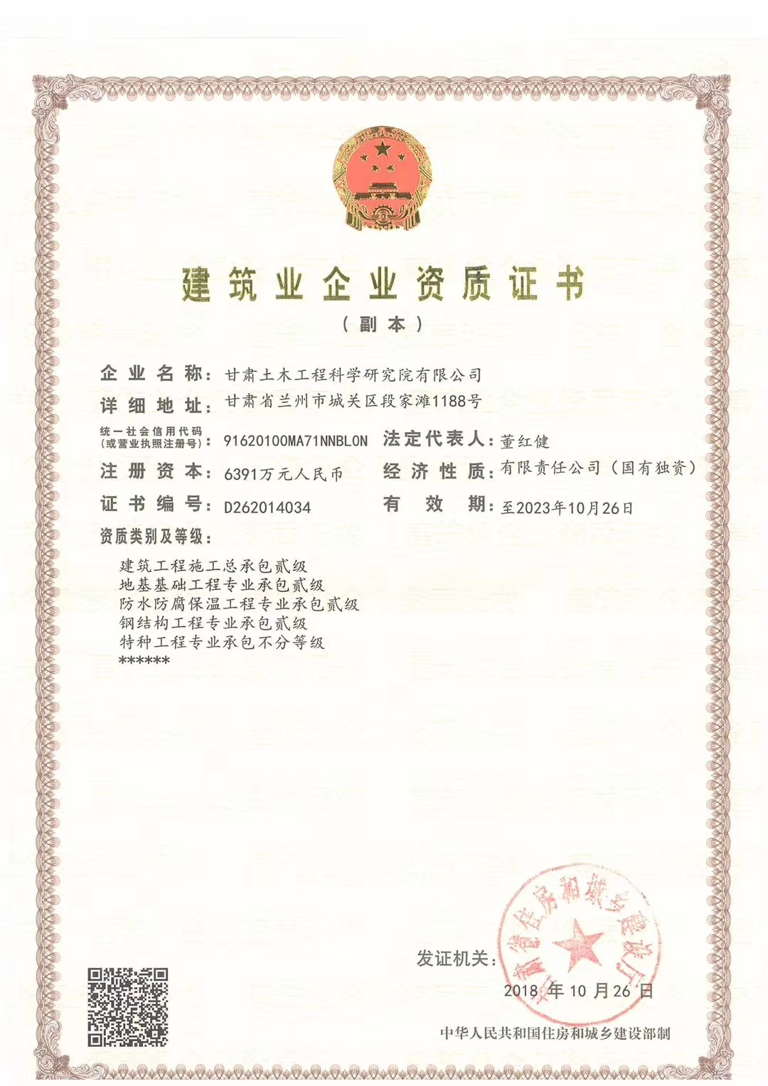 近日,公司建筑工程施工總承包貳級資質(zhì)和城鄉(xiāng)規(guī)劃丙級資質(zhì)獲甘肅省住房和城鄉(xiāng)建設(shè)廳和甘肅省自然資源廳批準,標志著公司資質(zhì)建設(shè)取得重大進展。