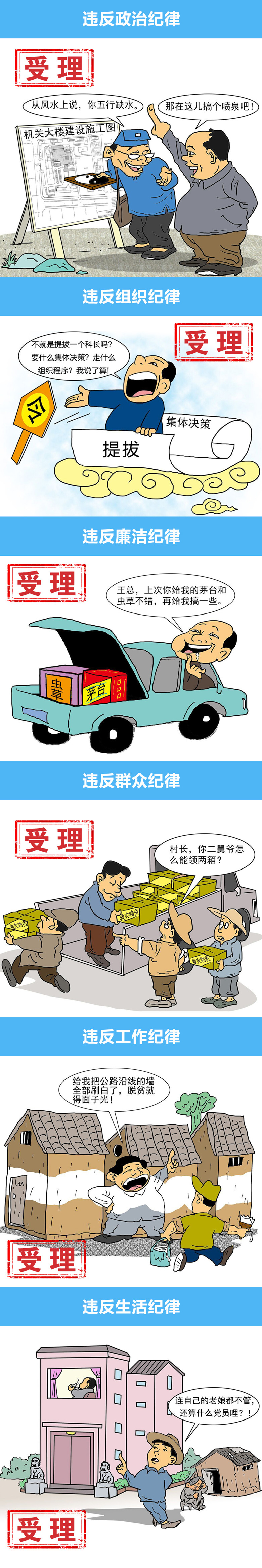 一是反映黨組織、黨員違反政治紀律、組織紀律、廉潔紀律、群眾紀律、工作紀律、生活紀律等黨的紀律行為;