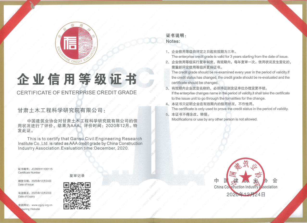 近日,中國建筑業(yè)協(xié)會公布2020年度全國建筑業(yè)AAA級信用企業(yè)(檢測機(jī)構(gòu))名單,我公司獲評2020年度建筑業(yè)AAA級信用企業(yè)。