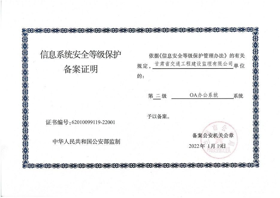 自工作開展以來,相關(guān)子公司積極貫徹落實集團公司工作舉措,集團本部、建筑設(shè)計院、水電設(shè)計院、土木工程院、招標(biāo)咨詢集團、交通監(jiān)理公司合計16個信息系統(tǒng)已順利完成信息系統(tǒng)安全等級保護2.0測評備案工作,并獲得監(jiān)管部門頒發(fā)的《信息系統(tǒng)安全等級保護備案證明》。通過此次等級保護2.0測評工作,集團公司網(wǎng)絡(luò)和重要的信息數(shù)據(jù)系統(tǒng)的安全防護和保障能力得到進一步提升,為推動集團公司數(shù)字化轉(zhuǎn)型工作打下堅實的基礎(chǔ)。
