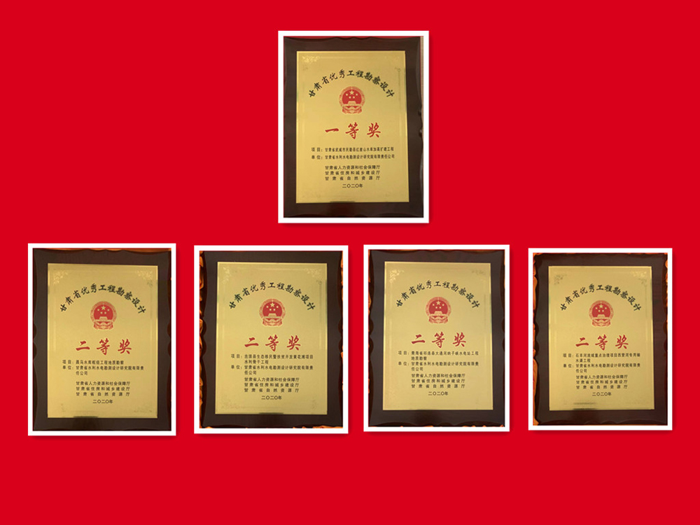 科研成果在工程實踐中開花結(jié)果,多個項目獲技術(shù)表彰獎勵:《民勤縣紅崖山水庫加高擴建工程》獲甘肅省優(yōu)秀工程勘察設(shè)計一等獎;《石羊河流域重點治理項目西營河專用輸水渠工程》《古浪縣生態(tài)移民暨扶貧開發(fā)黃花灘項目水利骨干工程》《大通河納子峽水電站工程地質(zhì)勘察》《昌馬水庫樞紐工程地質(zhì)勘察》分別獲甘肅省優(yōu)秀工程勘察設(shè)計二等獎;《甘肅中部生態(tài)移民扶貧開發(fā)供水工程可行性研究報告》獲全國優(yōu)秀工程咨詢成果獎三等獎;《清水縣“十三五”第二批光伏扶貧電站項目》獲全國優(yōu)秀工程咨詢成果獎優(yōu)秀獎。