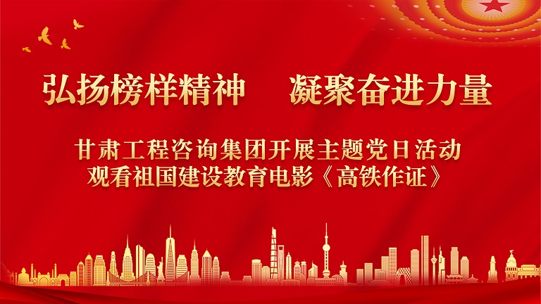 為進一步鞏固拓展黨史學習教育成果,宣傳弘揚“高鐵精神”,豐富“四史”教育形式,引導黨員干部不斷增強政治意識、團隊意識和社會責任感,近日,甘肅工程咨詢集團機關黨委組織開展“汲取榜樣精神 凝聚奮進力量”主題黨日活動,集中觀看祖國建設教育影片《高鐵作證》,集團機關全體干部職工50余人參加活動。