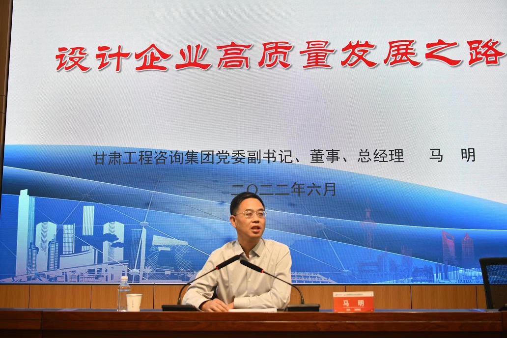 6月9日,在甘肅省建筑設(shè)計(jì)研究院有限公司喜迎建院70周年華誕之際,集團(tuán)公司黨委副書記、總經(jīng)理馬明受邀以《設(shè)計(jì)企業(yè)高質(zhì)量發(fā)展之路》為題作專題講座。集團(tuán)公司經(jīng)理層成員、各部門主要負(fù)責(zé)人及兄弟單位主要領(lǐng)導(dǎo),建筑設(shè)計(jì)院領(lǐng)導(dǎo)班子成員、全體中層干部聆聽(tīng)講座。