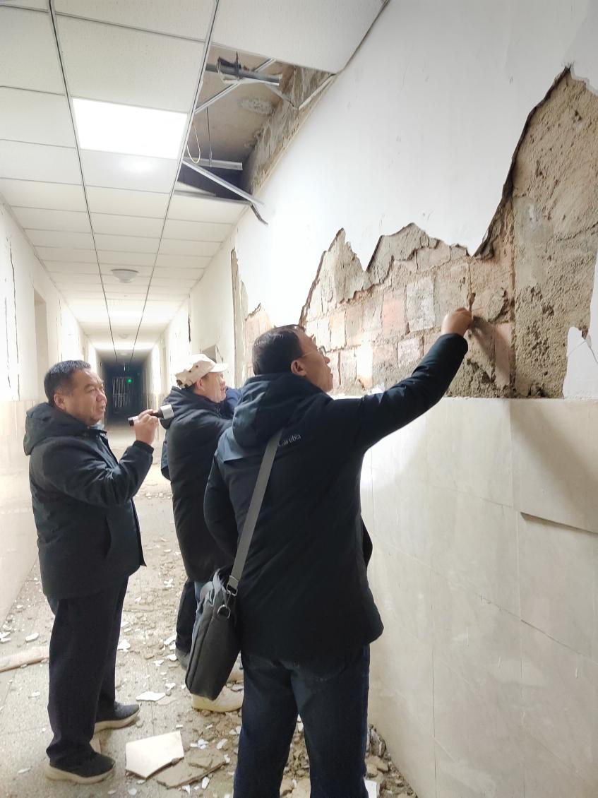 積石山縣海拔高、天氣冷、西風(fēng)烈。集團(tuán)公司派出的技術(shù)專家發(fā)揮各自專業(yè)技術(shù)特長,到達(dá)災(zāi)區(qū)即開展受災(zāi)房屋安全排查工作。95個專家小組重點(diǎn)對災(zāi)區(qū)學(xué)校、醫(yī)院、污水處理廠、供熱站、福利院、賓館以及水利工程、居民住宅進(jìn)行詳細(xì)排查,認(rèn)真出具評估結(jié)果,確保讓群眾住到安全的房屋里。