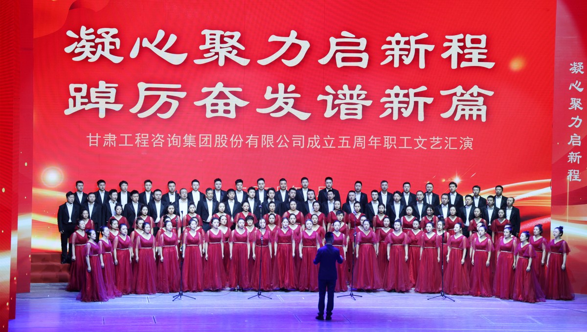 馬明致辭時講道,值此歲末年初、辭舊迎新之際,全體干部職工歡聚一堂,慶祝集團成立五周年。過去五年,集團不負省委省政府重托,不負廣大干部職工期盼,只爭朝夕、奮發(fā)圖強,在識變應(yīng)變求變中砥礪前行,實現(xiàn)了從“夯基壘臺、立柱架梁”到“聚合協(xié)同、積厚成勢”的跨越式發(fā)展,為建設(shè)全國一流工程技術(shù)產(chǎn)業(yè)集團矢志不渝。這五年,牢記“省之要者”,創(chuàng)建新集團開啟新征程。這五年,聚焦發(fā)展要務(wù),拓展新空間開辟新領(lǐng)域。這五年,推進改革創(chuàng)新,釋放新活力培育新動能。這五年,加強規(guī)范管理,構(gòu)建新體系再造新秩序。這五年,加強黨的建設(shè),貫徹新理論建設(shè)新文化。今日之“甘咨詢”,正在全面建設(shè)社會主義現(xiàn)代化幸福美好新甘肅的火熱實踐中奮楫拼搏,在打造全國一流工程技術(shù)產(chǎn)業(yè)集團的光明大道上闊步前行。面向未來,集團公司務(wù)必做到“五個堅持”,堅持黨的領(lǐng)導(dǎo)、打造優(yōu)秀文化,堅持智庫引領(lǐng)、服務(wù)全省大局,堅持改革發(fā)展、增強經(jīng)濟實力,堅持創(chuàng)新創(chuàng)意、激發(fā)活力動能,堅持以人為本、打造人才高地。要在強國建設(shè)、民族復(fù)興的新征程上,凝心聚力、守正創(chuàng)新、實干擔當,用汗水澆灌奮斗的田野,用智慧照亮夢想的航程,向著建設(shè)全國一流工程技術(shù)產(chǎn)業(yè)集團目標篤定前行,奮力譜寫集團公司高質(zhì)量發(fā)展嶄新篇章!
