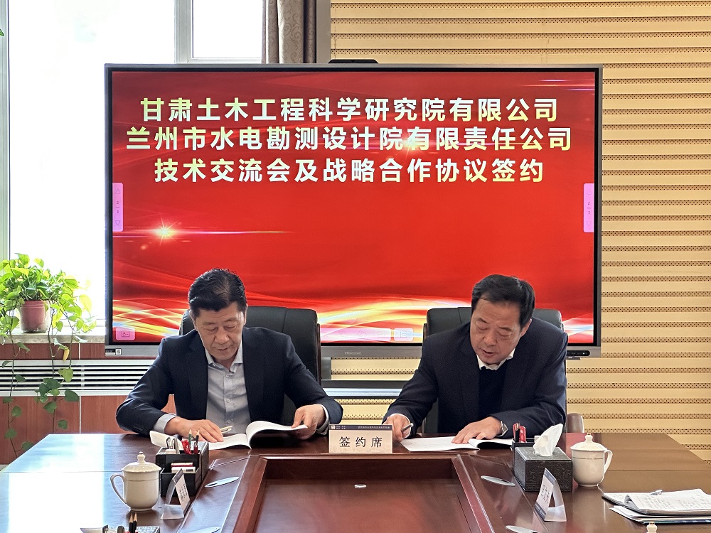 近日,甘肅土木工程科學(xué)研究院有限公司(以下簡(jiǎn)稱(chēng)“甘肅土木院”)與蘭州市水電勘測(cè)設(shè)計(jì)院有限責(zé)任公司(以下簡(jiǎn)稱(chēng)“蘭州市水電院”)在蘭州簽署了戰(zhàn)略合作協(xié)議。此次簽約,標(biāo)志著兩家公司在土木工程及水電勘測(cè)設(shè)計(jì)領(lǐng)域正式開(kāi)啟全面深入的合作模式。