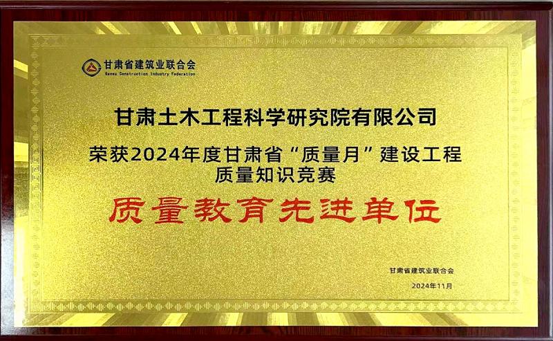 甘肅省建筑業(yè)聯(lián)合會舉辦的2024年度甘肅省“質(zhì)量月”建設工程質(zhì)量知識競賽結果已經(jīng)揭曉,我公司榮獲“質(zhì)量教育先進單位”稱號。